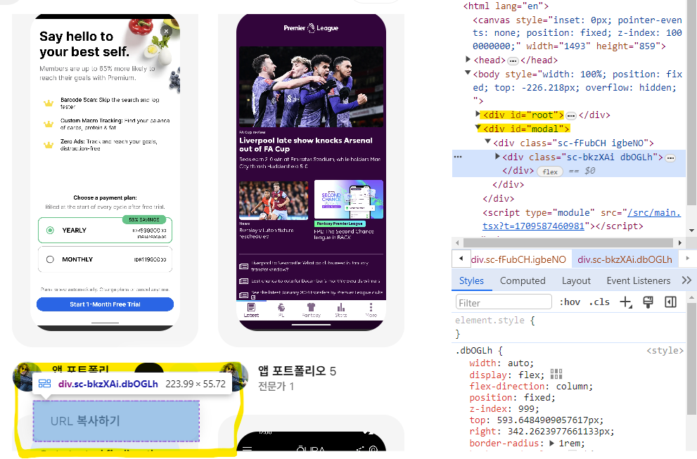 아래 elements 구조를 보면 Popper를 화면에 띄웠을 때 id=root 부모의 자식에 포함되는 게 아닌,