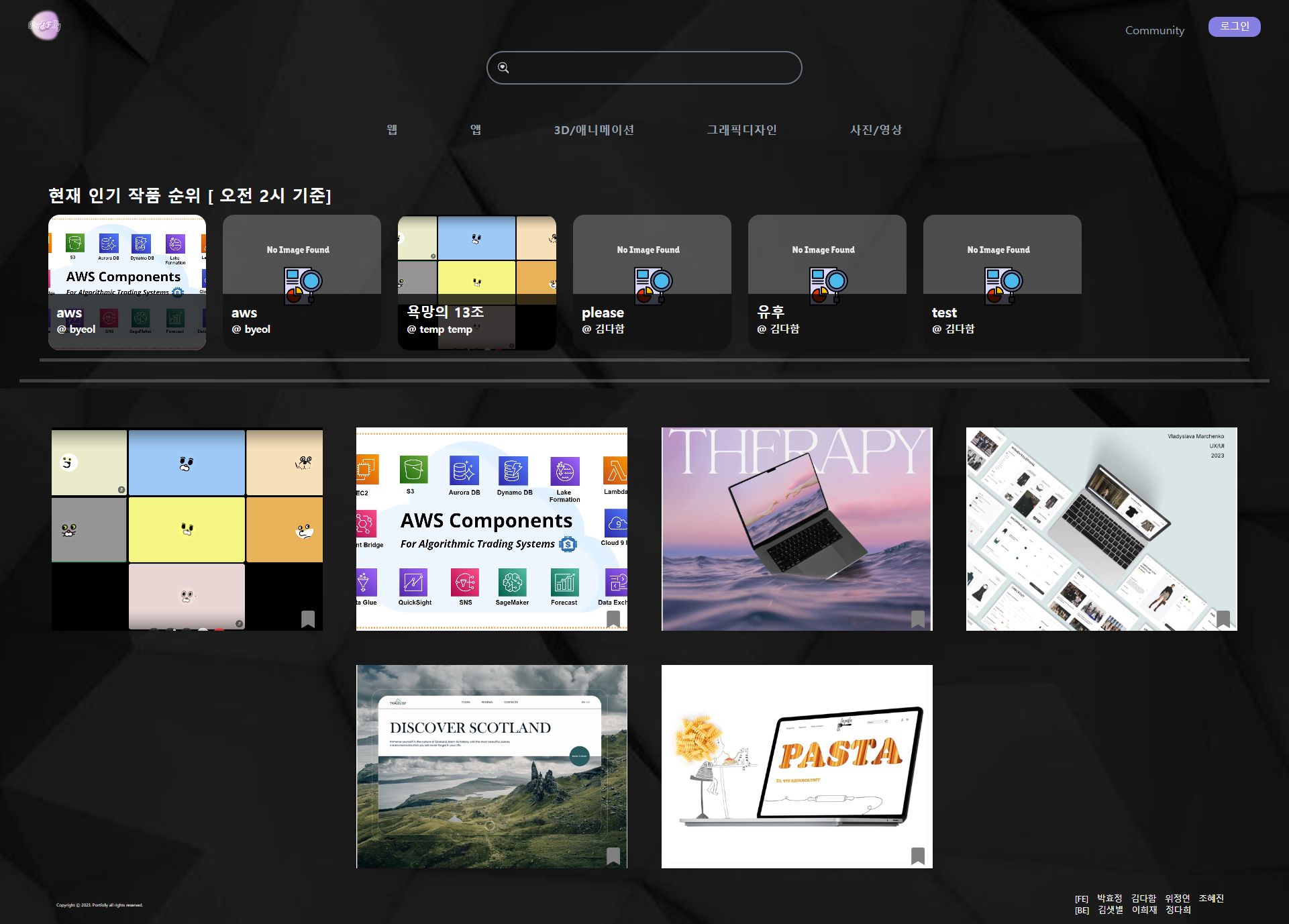 기존 Portfolly 메인 페이지 UI 그런데 급하게 설계한 UX/UI라 아쉬운 점이 몇가지 있습니다.