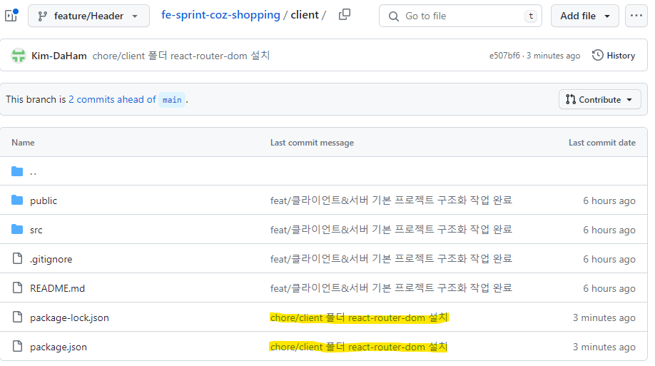 git commit -m 'chore/client 폴더 react-router-dom 설치'
