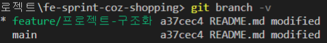 git checkout -b feature/프로젝트-구조화 브랜치를 생성하고