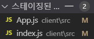 App.js, index.js 스테이징 결과 이번에는 vsCode에서 gui를 통해 스테이징 해주고,