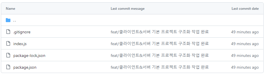git commit -m 'feat/클라이언트&서버 기본 프로젝트 구조화 작업 완료'