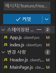 그럼 마찬가지로 Header.js와 MainPage.js 파일을 커밋/푸쉬 해주는 반복 작업을 수행합니다.