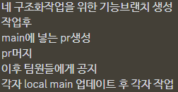 그래서 "구조화작업만을 위한 브랜치가 존재하는 것인지" 여쭤봤더니