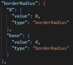 global.json에 들어가보면 borderRadius 는 아래와 같이 정의되어 있다. border-radius: 8px; 이 되는 거다.