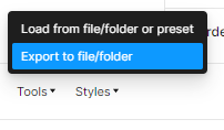 Export to file/folder 버튼