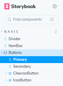 export default { title: 'Basic/Buttons', // 스토리 분류 및 컴포넌트 이름 component: Template, // 테스트할 컴포넌트Button };Button 스토리를 정의한다. Primary , Secondary 두 가지 버전이 존재한다.